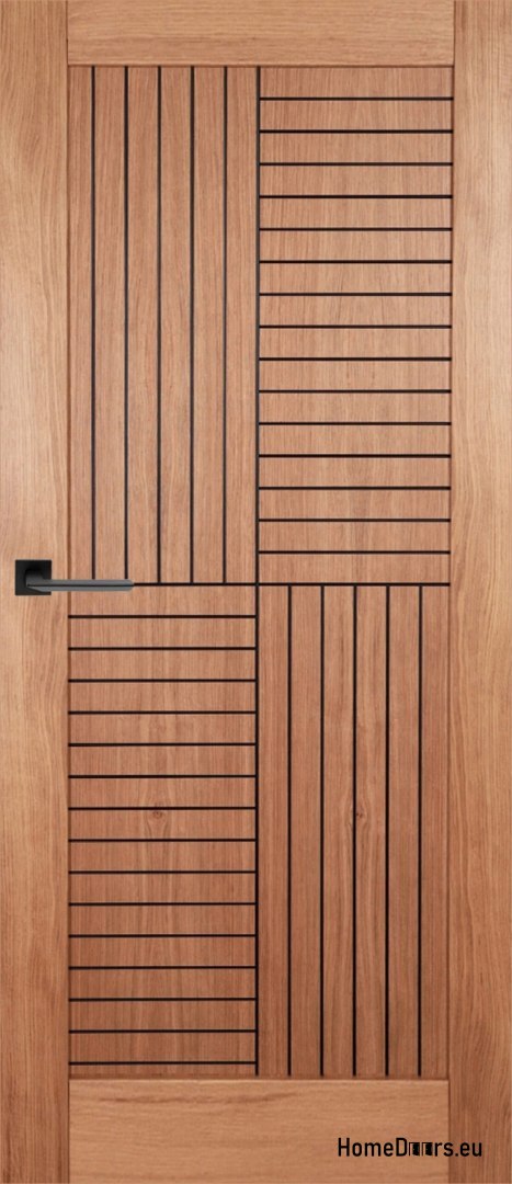 Drzwi drewniane wewnątrz-lokalowe to drzwi wykonane z naturalnego selekcjonowanego drewna, wykończone lakierem bezbarwnym. Grubość skrzydła drzwiowego to 40 mm. Drzwi wykonane z płyty mdf oklejanej naturalną okleiną dębową lub jesionową z płyciną z czarnego mdf-u pokrytą okleiną dębową lub jesionową. Opcjonalnie występują z czarnym zamkiem i zaczepem oraz czarnymi zawiasami.