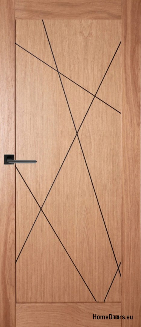 Drzwi drewniane wewnątrz-lokalowe to drzwi wykonane z naturalnego selekcjonowanego drewna, wykończone lakierem bezbarwnym. Grubość skrzydła drzwiowego to 40 mm. Drzwi wykonane z płyty mdf oklejanej naturalną okleiną dębową lub jesionową z płyciną z czarnego mdf-u pokrytą okleiną dębową lub jesionową. Opcjonalnie występują z czarnym zamkiem i zaczepem oraz czarnymi zawiasami.