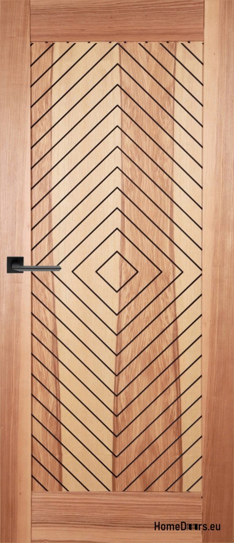 Drzwi drewniane wewnątrz-lokalowe to drzwi wykonane z naturalnego selekcjonowanego drewna, wykończone lakierem bezbarwnym. Grubość skrzydła drzwiowego to 40 mm. Drzwi wykonane z płyty mdf oklejanej naturalną okleiną dębową lub jesionową z płyciną z czarnego mdf-u pokrytą okleiną dębową lub jesionową. Opcjonalnie występują z czarnym zamkiem i zaczepem oraz czarnymi zawiasami.