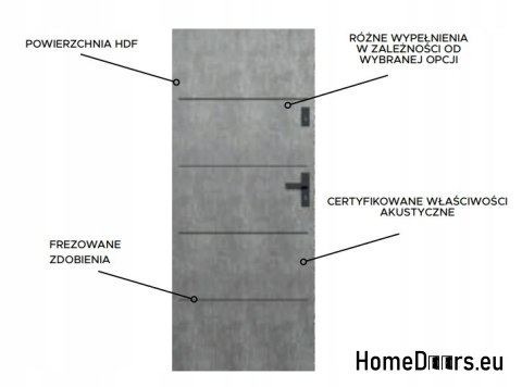 Wzmocniona struktura powierzchni odznaczająca się zwiększoną wytrzymałością i twardością. Dodatkowe wzmocnienie zapobiega powstawaniu mikro-zadrapań co poprawia znacznie komfort i estetykę podczas użytkowania drzwi.