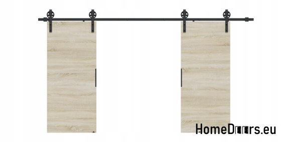 W zestawie otrzymujesz kompletne drzwi przesuwne 110 cm – skrzydło w kolorze Dębu Sonoma + czarny system przesuwny LOFT 04 + uchwyt i prowadniki.