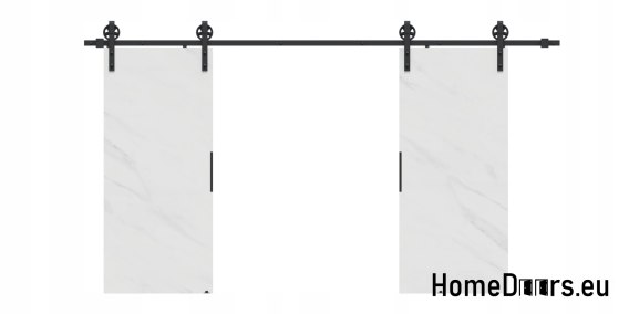 W zestawie otrzymujesz kompletne drzwi przesuwne 120 cm – skrzydło w kolorze Marmuru Białego + czarny system przesuwny LOFT 04 + uchwyt i prowadniki.