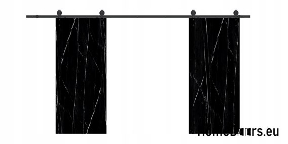 W zestawie otrzymujesz kompletne drzwi przesuwne 130 cm – skrzydło w kolorze Czarnego Marmuru + czarny system przesuwny LOFT 01 + uchwyt i prowadniki.
