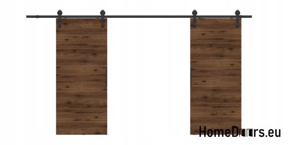 W zestawie otrzymujesz kompletne drzwi przesuwne 130 cm – skrzydło w kolorze Orzechu + czarny system przesuwny LOFT P-01 + uchwyt i prowadniki.
