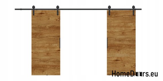 W zestawie otrzymujesz kompletne drzwi przesuwne 140 cm – skrzydło w kolorze Dębu Lefkas + czarny system przesuwny LOFT 01 + uchwyt i prowadniki.