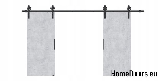 W zestawie otrzymujesz kompletne drzwi przesuwne 140 cm – skrzydło w kolorze beton szary + czarny system przesuwny LOFT 04 + uchwyt i prowadniki.