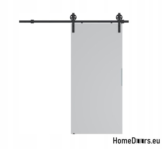 W zestawie otrzymujesz kompletne drzwi przesuwne 85 cm – skrzydło w kolorze Szarym + czarny system przesuwny LOFT A-04 + uchwyt i prowadniki.