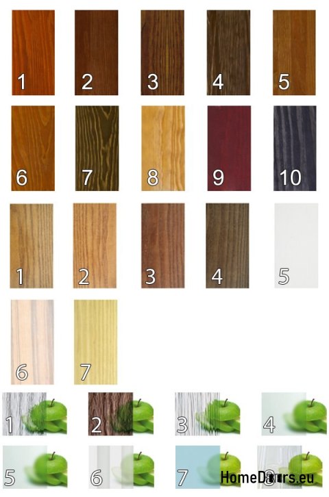 - Za dopłatą powierzchnia drzwi wykończona bejcami i lakierami z widoczną strukturą drewna (wyjątek stanowi kolor biały kryjący)