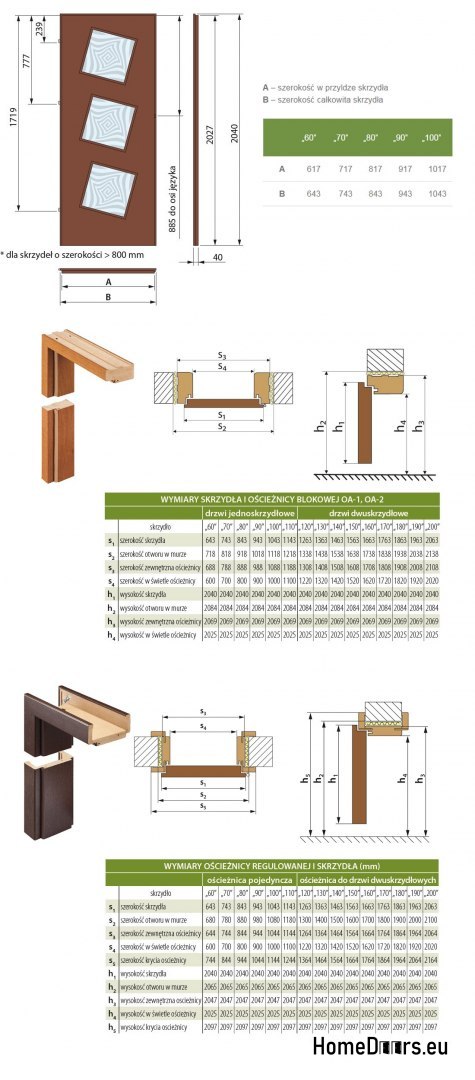 Drzwi wewnętrzne płytowe - wymiary skrzydeł i ościeżnic