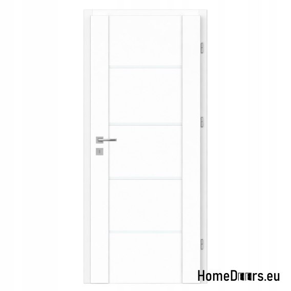 Drzwi wewnętrzne Lento pokojowe przeszklone (4 szybki ) 70 Prawe białe z zamkiem z przebiciem na klucz pokojowy