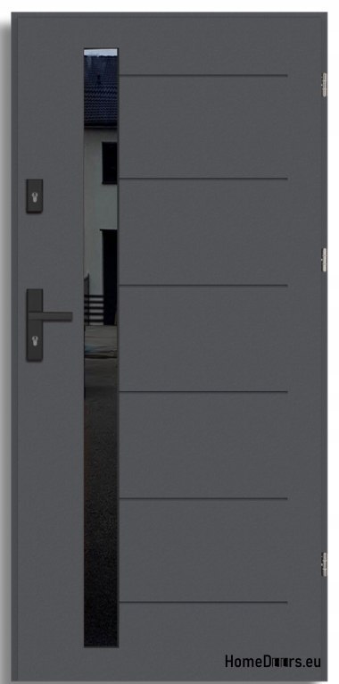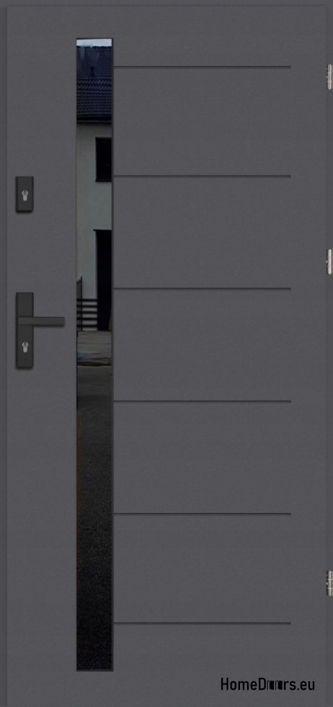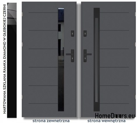 - Ciepłe przeszklenie wielokomorowe - szyba diamond antisol deep black z czarnego szjła hartowanego, od wewnętrznej strony skrzydła z stalową ramką w kolorze czarnym
