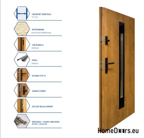 - Szerokość:180 cm (100 + 80 skrzydło bierne), wymiar z ościeżnicą 1910 x 2075 mm
