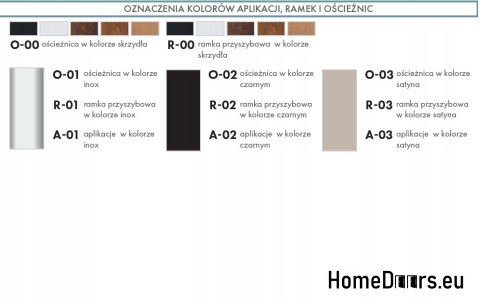 Uwaga! Domyślnie oferujemy kolor widoczny na zdjęciu głównym. W przypadku chęci zmiany koloru na inny z przedstawionej palety kolorów prosimy po dokonaniu zakupu przesłać informację o wybranym kolorze. Oferowany model drzwi dostępny jest na innych naszych aukcjach w następujących kolorach:
